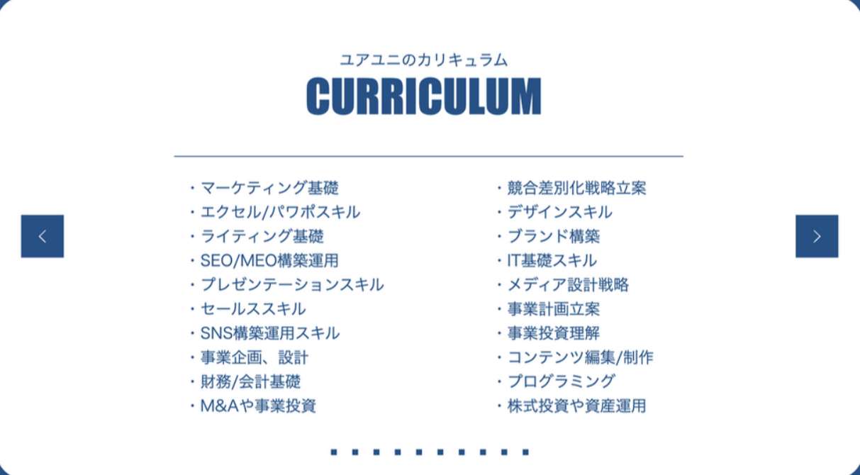 - 卒業する頃には全員が自分の事業で収益化できており、全員が経済的、またスキル的自由を得ている状態にすることがミッションです。